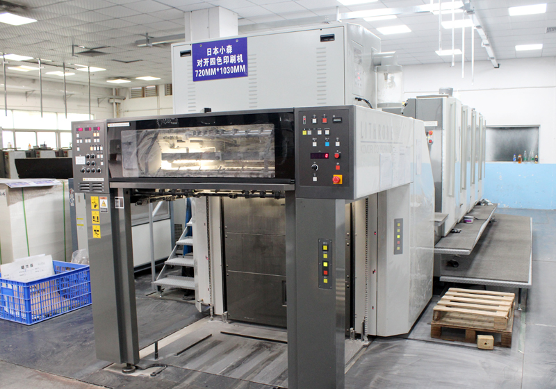 引進(jìn)德國羅蘭對開五色、羅蘭對開雙色、日本小森四開四色印刷設(shè)備,生產(chǎn)線完善